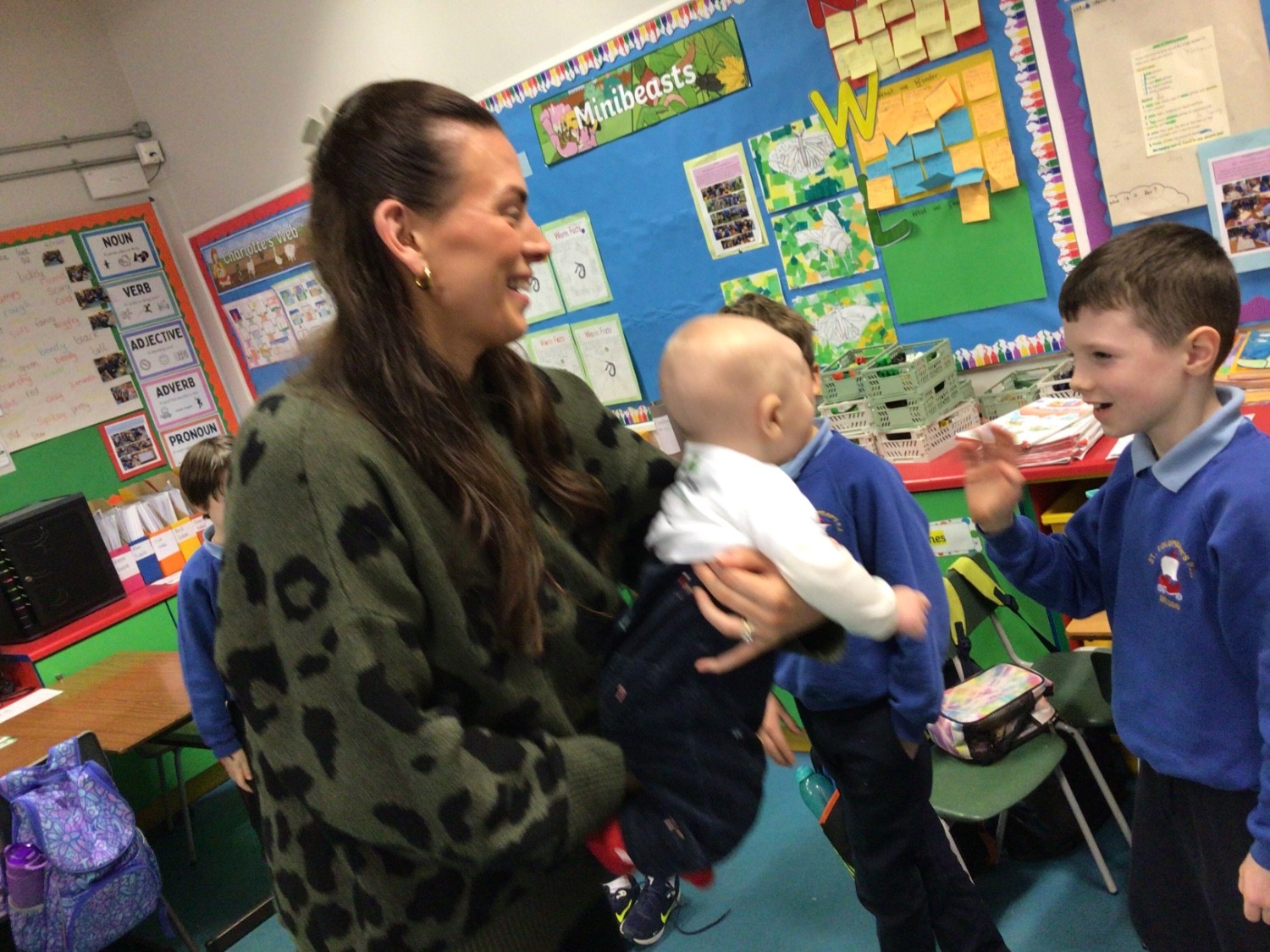 On Monday we welcomed our teacher baby Jarlath and his mummy Claire back into school for Theme 2 family visit.